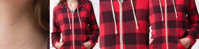 - Contrast zipper and drawcord