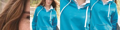 The unique V-neck styling of this hooded pullover lends a feminine attitude to a cool-weather necessity.