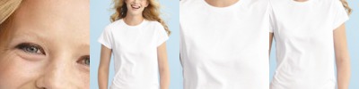 - Fabric laundered, 4.3 oz., 100% combed ringspun cotton, 32 singles
