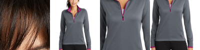 A boldly striped inner collar and reverse coil zipper give this cover-up a modern edge. Of course, it also performs with Dri-FIT moisture management technology. The design features a rib knit collar and cuffs and an open hem. Tailored for a feminine fit with shaped sleeve cuffs and a drop tail hem. The contrast Swoosh design trademark embroidered on the left hem. Made of 8.3-ounce, 100% Dri-FIT polyester.