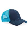 Contrast color trim and sewn eyelets give thisstructured cap a sporty two-tone look.