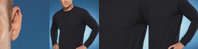 A long-sleeve option in moisture-wicking polyester.