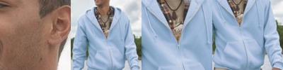 - Contrast hood and sleeves