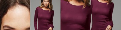 - Wide neckline and ribbed cuffs and waistband