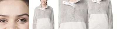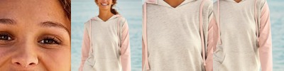 W20145 Women’s French Terry Hooded Pullover with Colorblocked Sleeves