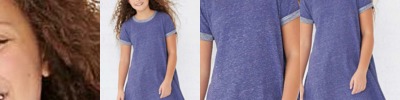 4.8 ounce 50% polyester/50% cotton jersey knit * Crew neck * Contrast color neck and sleeves * Raglan sleeves * Serged fishtail bottom