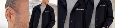 - Champion "C" patch on left sleeve