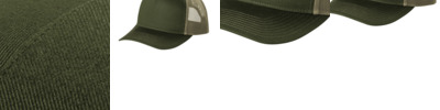Fabric 100% cotton twill front panels and bill (Solids), 100% poly mesh back panels; 65/35 polyester/cotton twill front panels and bill (Heather Grey)