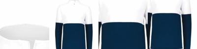 100% polyester wicking knit * Wicks moisture * V-neck collar * Contrast color inserts