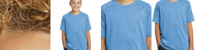 - 4.4-ounce, 75/13/12 poly/cotton/rayon jersey with PosiCharge technology