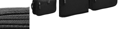 - 600D printed poly; 600D shadow ripstop poly/1,680D poly (Black/Silver)