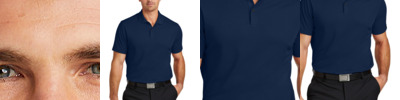 Built from 100% recycled polyester fabric, Nike scores a victory for sustainability and performance in these sophisticated polos engineered with Dri-FIT moisture management technology. Details include a flat knit collar, two-button placket with dyed-to-match buttons with 60% recycled content, open hem sleeves and an open hem. A contrast heat transfer Swoosh logo is on the left sleeve. Made of 4-ounce, 100% recycled polyester fabric.