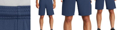 Our lightweight, unlined short with pockets wicks moisture and locks in colors. 3.8-ounce, 100% polyester interlock with PosiCharge technology Removable tag for comfort and relabeling Elastic waistband Continuous loop drawcord Side pockets 9-inch inseam