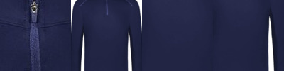 - Quarter-zip pullover style with zipper garage
