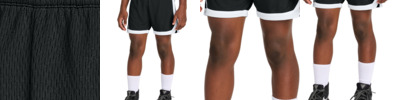 Color side is 100% polyester propelit micromesh wicking knit * White side is 100% polyester wicking knit * Wicks Moisture * Covered elastic waistband with inside drawcord * Contrast color inserts * Fully reversible * Each layer hemmed separately for embellishment * 10-inch inseam * Youth inseam graded * Designed to be NFHS compliant