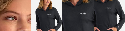 - HUK branding on left hip and sleeve